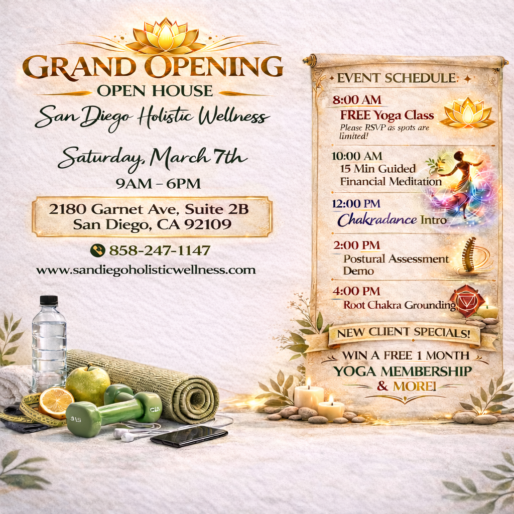 San Diego Holistic Wellness is a healing space designed to support your body, mind, and spirit — all in one place. We offer Corrective Exercise, Integrated Health Coaching, Reiki, Workshops, Chakradance, Yoga, and Fitness Classes to guide you on a personalized healing journey.